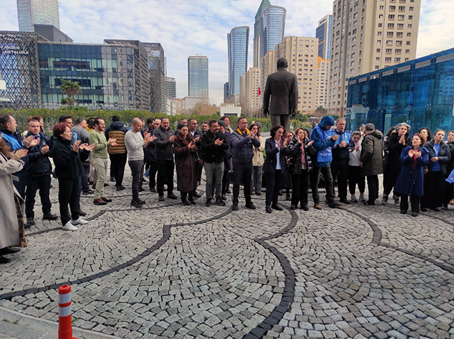 Açıklamanın ardında kısa süre oturma eylemi yapıldı. Eyleme yaklaşık 200 kişi katıldı. Eyleme Genel-İş 3 Nolu Şube yöneticileri üyeleri ve işyeri temsilcileri ve Emek Partisi Ümraniye ilçe Başkanı Sami Evren ve yönetim kurulu üyeleri de destek verdi. Eylemde sık sık ‘ Kurtuluş yok tek başına ya hep beraber ya hiç birimiz’, Direne direne kazanacağız’ sloganlar atıldı.