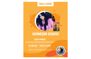 Şair Ezgi Güneş, “Güneşin Ezgisi” kitabını ilk tanıtım ve söyleşisini Kartal Belediyesi Fuaye alanında gerçekleştireceği imza etkinliğinde gerçekleştirecektir.