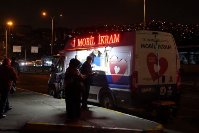 Soğuk havanın etkisini artırdığı kış günlerinde Kartal Belediyesi, sabah erken saatlerde yola çıkan vatandaşlar için ilçenin farklı noktalarında sıcak çorba ikramını sürdürüyor. Mobil ikram araçlarıyla gerçekleştirilen uygulamayla, günün ilk saatlerinde işe ve okula giden vatandaşların içi ısınıyor.