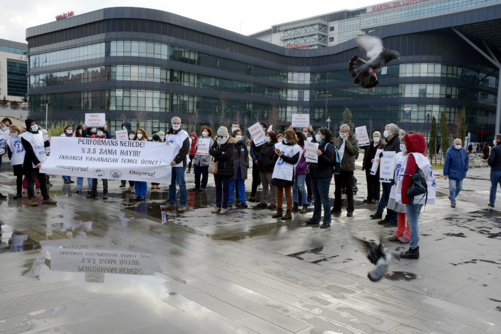 Türkiye’nin pek çok ilinde olduğu gibi Kartal Lütfi Kırdar Hastanesi’nde de hemşire ve ebeler eylem düzenledi: Ebe ve hemşirelik mesleğindeki çalışan açığı güvenceli-kadrolu istihdam ile giderilmesini istiyoruz.