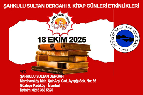 Türkiye Yazarlar Sendikası (TYS), 15–19 Ekim 2025 tarihleri arasında gerçekleştirilecek 5. Şahkulu Sultan Dergâhı Kitap Günleri kapsamında, 18 Ekim Cumartesi günü üç ayrı etkinlikle edebiyatseverlerle buluşacak. Etkinlik süresince sendika üyesi yazarların imza günleri de TYS’ye ayrılan stantta gerçekleştirilecek.